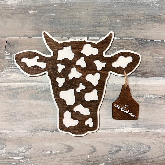 Unfinished Cow Head Cutout with Tag - Free Shipping